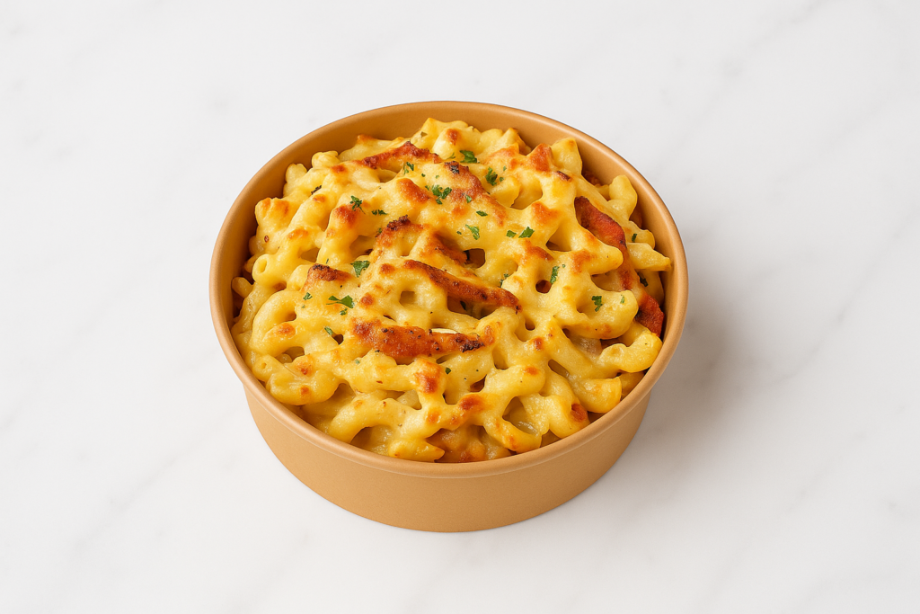 Un délicieux gratin de coquillettes au cheddar et à la mozzarella,